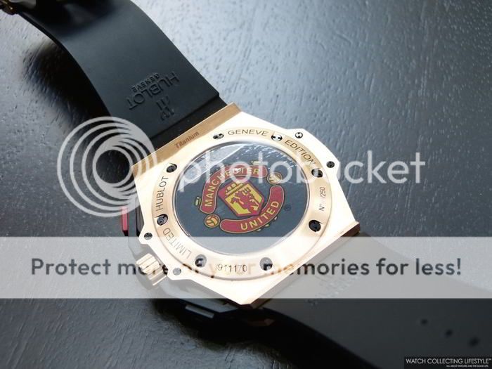 Xem xét quan hệ đối tác lâu dài giữa hai công ty, đồng hồ này là một điều trị đặc biệt cho người hâm mộ Manchester United có màu đỏ đúng sự thật và trong đó có một phiên bản rất hạn chế 250 chiếc trong vàng 18K màu đỏ với một trường hợp giữa titan đo 48 mm đường kính. Điều này xem, là một một trong những phiên bản giới hạn Hublot đồng hồ với trọng tâm vào thế giới của bóng đá giống như Paris Saint-Germain, Juventus hay Bayern Munich mảnh phiên bản giới hạn.